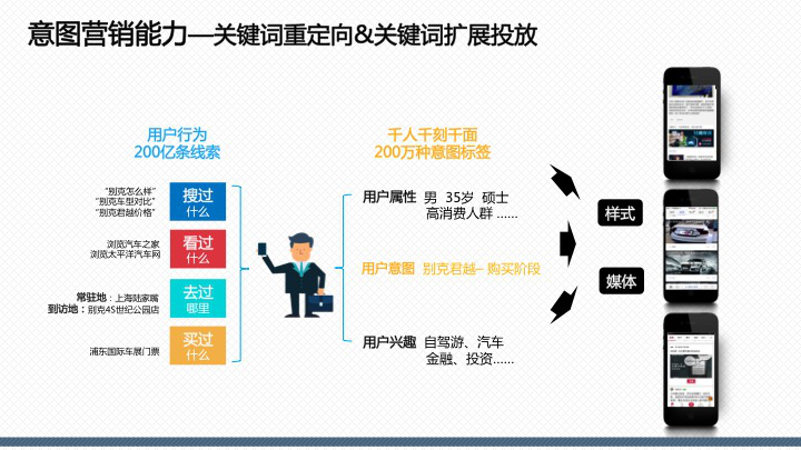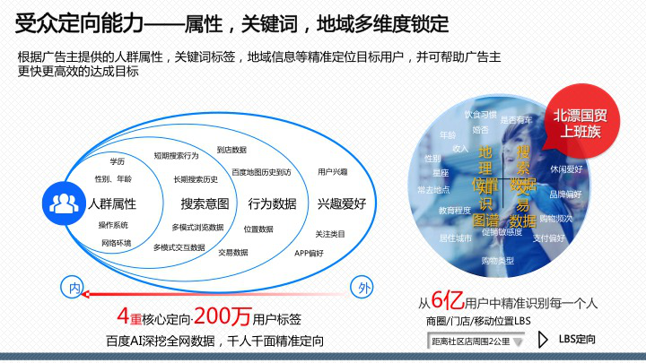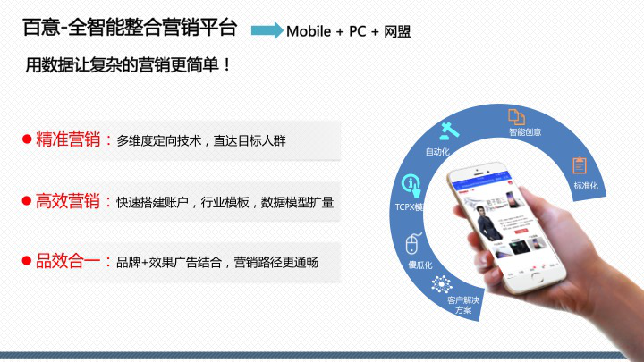 百度百意:提供品效合一的跨屏、全能、程序化投放服務(wù)囊括60萬(wàn)家網(wǎng)站、app聯(lián)盟資源,橫跨PC、移動(dòng)、交通、電視多屏呈現(xiàn),整合多維精準(zhǔn)定向能力,千人千面時(shí)代,目標(biāo)客戶咫尺觸達(dá)。